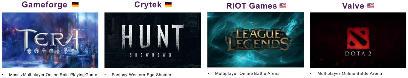 Genau genommen sind alle Spieleentwickler, die im Indie und MOBA Genre tätig und ihre Spiele auf Digitalen Plattformen wie Steam oder Epic Games vertreiben, unsere Konkurrenten.
